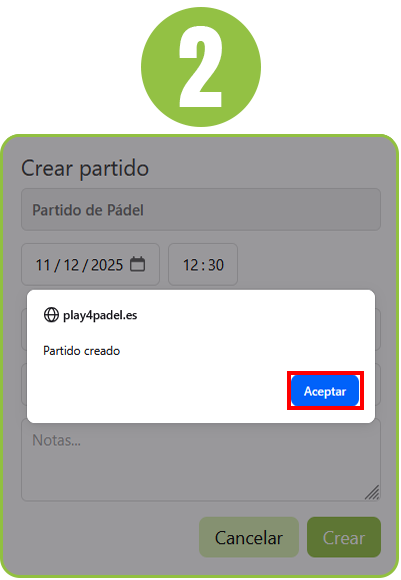 Crea el partido y espera unos instantes a que se confirme correctamente