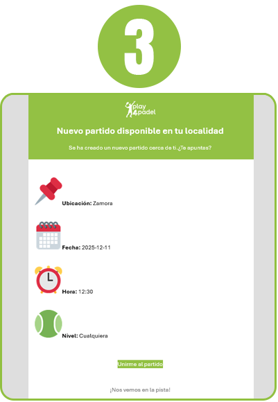 🎾 Mira los partidos disponibles en tu zona. Regístrate gratis para unirte o crear uno.